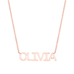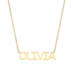 The 14k Linear Name Necklace is made in our custom rounded block letter font. Wear your name proudly or the name of the one you love.