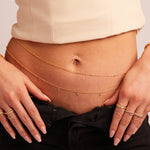 Our cult favorite, Mariner Chain is now available to drape your waist this Summer. Part Mariner Chain, Part roll chain and equipped with a 2" extender, this chain is made to fit most. Pair with your favorite swimsuit but also wear it with those trending cut out dresses. This chain can be worn lower to drape the edge of your bottoms or higher up above your bellybutton, the choice is yours. For custom sizing please email customer support.