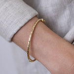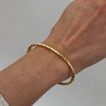 Illuminate your wrist with the our radiant Diamond Cut Bangle. The diamond-cut pattern creates a mesmerizing play of light, casting reflections that shine along the surface. Each facet sparkles with a captivating allure, enhancing the beauty of the piece and adding depth to its design. Versatile and chic, this is the perfect accessory for any occasion.