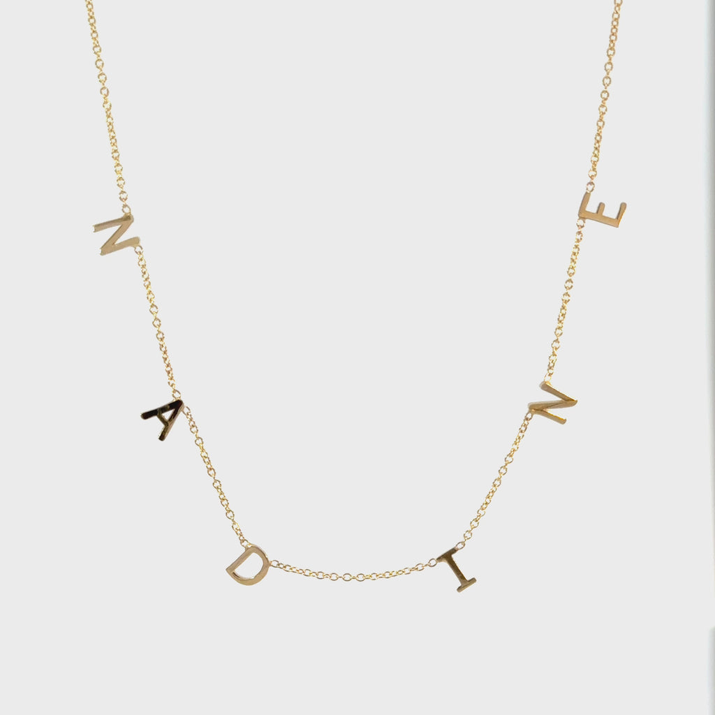 The 14K Mini Strand Letter Necklace is made in a custom BabyGold font. Personalize and stun in this custom solid custom letter piece. You'll never want to take it off.