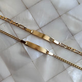We combined the cool of a Figaro chain with the timeless style of a ID Bracelet to bring you this distinct Figaro Chain Custom ID Bracelet! This modern classic, will be a wrist stack staple! Customizable up to 7 letters, Pairs perfectly with a diamonds to chunky chains! Perfect for gifting too!