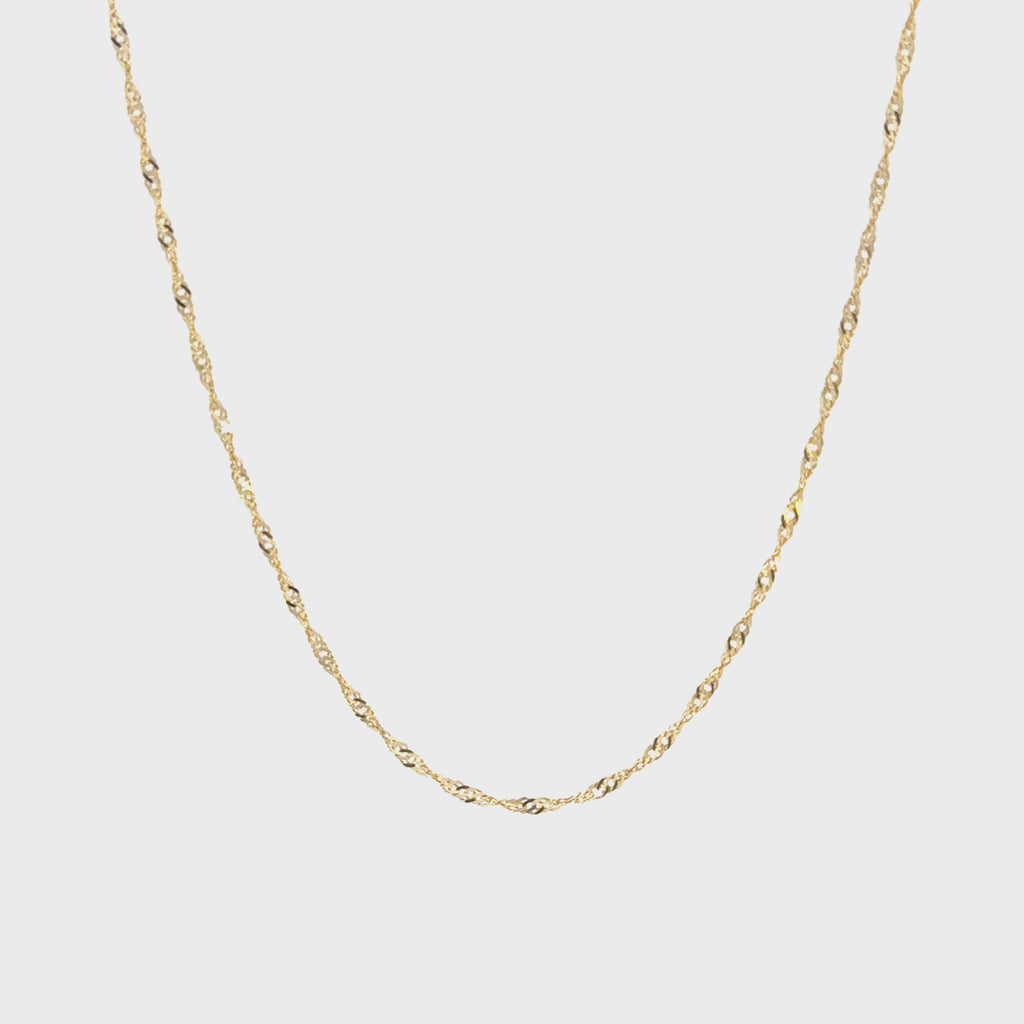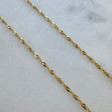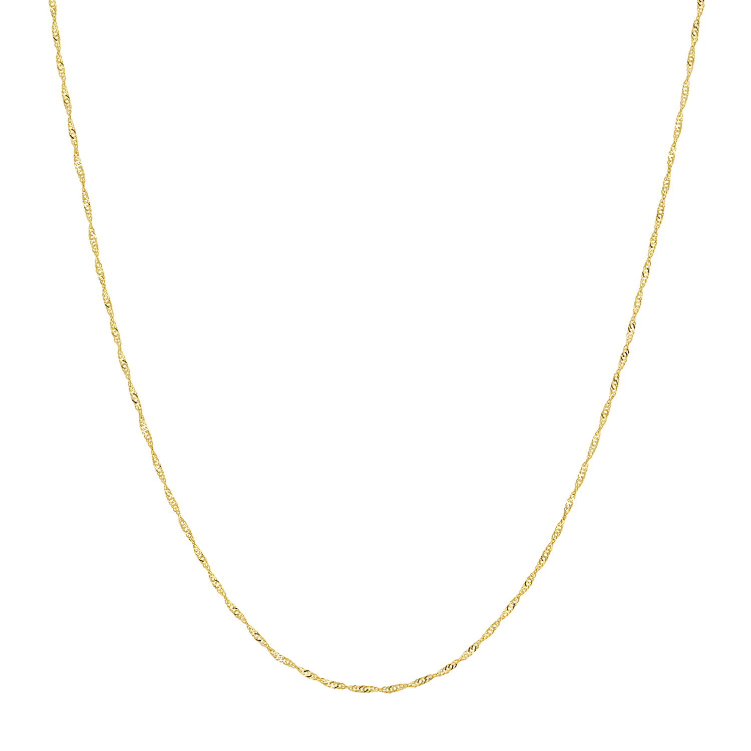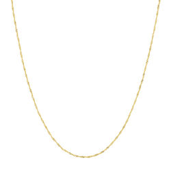 Don't get it twisted, the links on our Singapore chain are crafted to reflect light like no other chain can. Lightweight yet packed with major style, you will love the hybrid rope and curb link mix that makes it perfect as a stand alone piece in any neck stack. So whether alone or layered with your favorite charms, our Singapore Chain is sure to be your new fave.