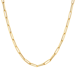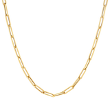 Bold and trendy but light enough to be wearable for your mini me too! Our Kids Paper Clip Chain Necklace is made from Solid 14K Gold, like all of our jewelry - never vermeil or plated. However, the links are machined into hollow links to create a 14K gold paper clip chain that is also affordable and light enough to layer. The clasp and links allow for adjustable lengths. Your little one is sure to make a bold statement with this popular necklace.