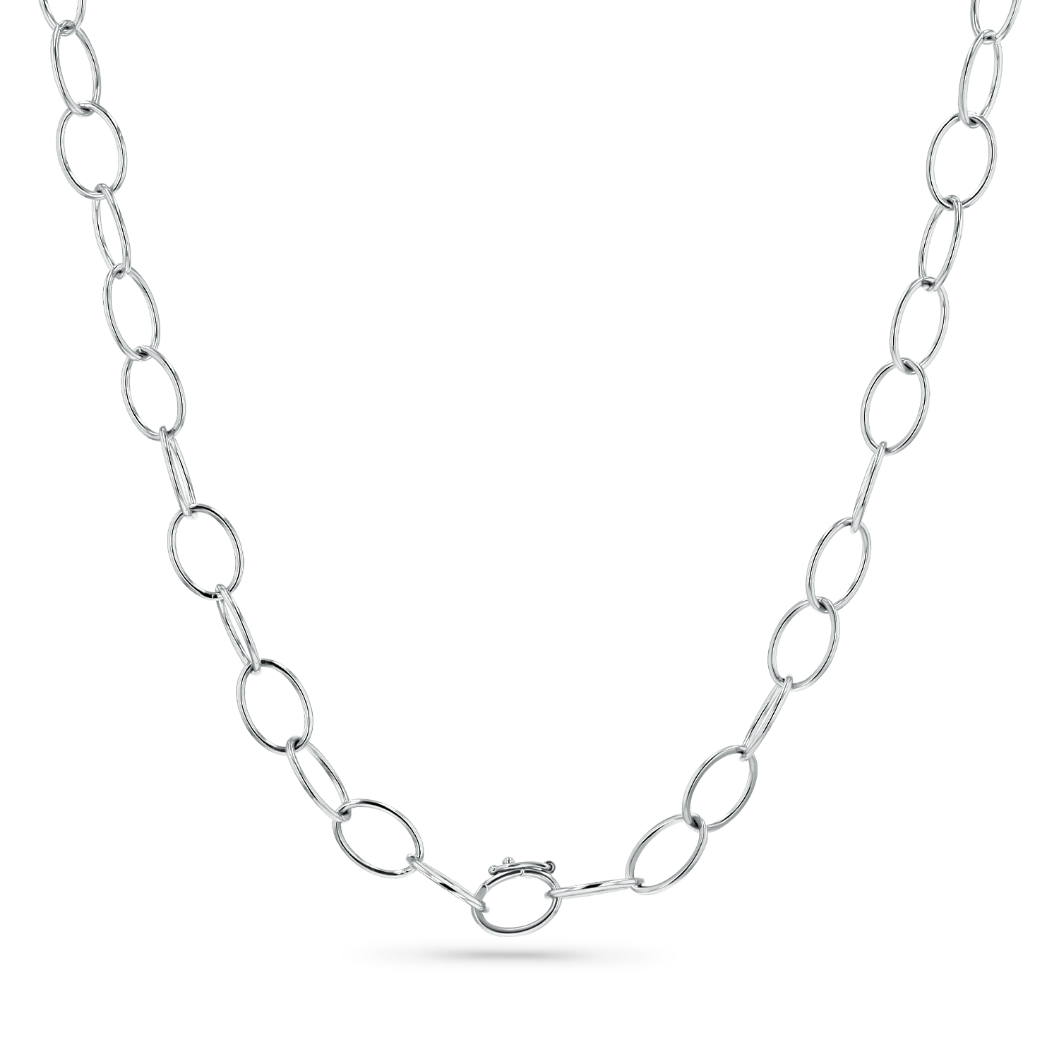 The perfect charm chain necklace is finally here! Statement oval links in high polish shine, crafted from 14K Gold, this necklace boasts a brilliant pull open center clasp design. All you have to do is decide which charms to layer in. Securely snaps closed with a thoughtfully placed clasp, so you don't have to worry about losing your treasured charms. Turn it around for a endless look and you'll see this chain is as unique as you! Whether you choose a single statement charm or dainty ones for a charm story, you will love all the ways to wear it!