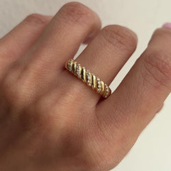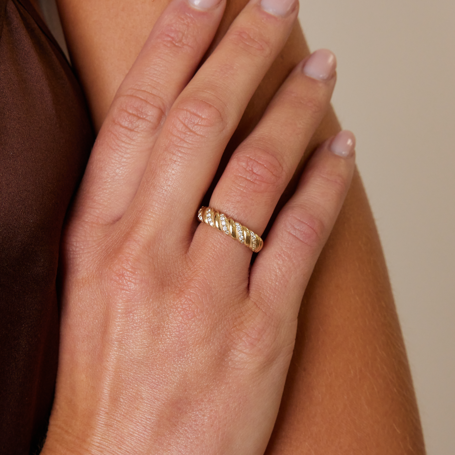 A graceful twist that radiates unmistakable luxury, our new Wide Diamond Twist ring is a timeless classic that will live in your collection for years to come. Handcrafted in 14K Solid Gold with .15ct diamonds, you will love all the shimmer, texture and vintage vibes this beauty gives! Stack with our Wide Twist Ring for maximum impact.