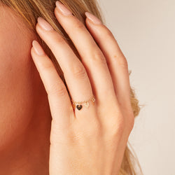Love, but make it playful. This delicate 14K Gold chain ring features tiny, shimmering heart charms that sway with every movement. Perfect for stacking or wearing solo, it’s the kind of piece that feels personal and so unique. Designed to add a touch of whimsy to your everyday, this dangle ring is as lightweight as it is eye-catching. Handcrafted in solid gold, it’s made to love and last, just like the hearts it carries.