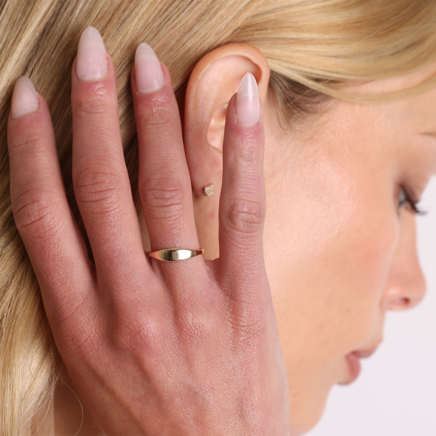 Choose from a variety of designs, including classic smooth bands, intricate twisted rings, or textured hammered finishes. Pair them with initial rings, signet rings, or colorful gemstone pieces to create a personalized and eye-catching stack that’s uniquely yours. Each ring is custom-made for a flawless fit, ensuring lasting comfort and elegance.
