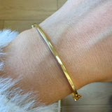 Introducing our Linear Bangle, the epitome of sleek minimalism. Crafted from polished 14K gold, its smooth, uninterrupted line creates a refined silhouette that’s both timeless and modern. The subtle design and lightweight feel make this piece perfect for everyday wear, whether you’re stacking it with other bangles or letting it shine on its own. With a secure hinged clasp for ease and durability, the Linear Bangle is designed for those who appreciate simplicity with a touch of sophistication. This piece is your go-to for an effortlessly chic look, day or night.