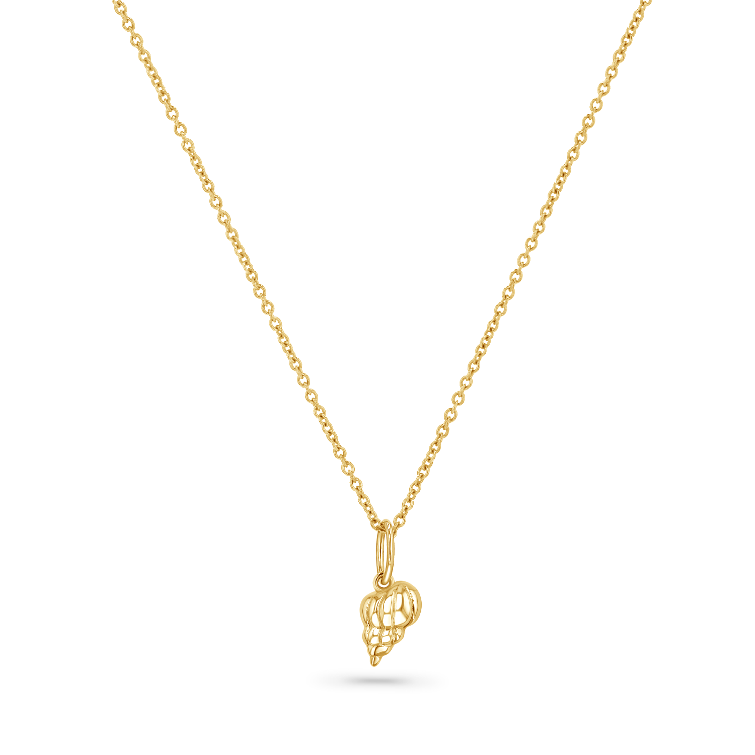 Your ocean treasure, miniaturized and crafted in 14K Gold our Soleil Tulip Seashell Charm is a polished take on the classic spiral conch shell, sculpted with curves and ridged detail that catches the light just right. Wear it solo on a slim chain or stack it with your favorite seaside icons. It’s the kind of piece that feels like a found keepsake but lasts forever.