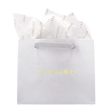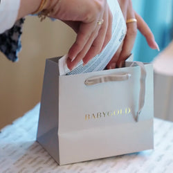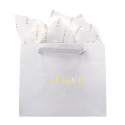 Wrap it up in BABYGOLD with one of our stunningly chic gift bags! Embossed with our beautiful Logo on the outside,  also includes custom BABYGOLD logo tissue paper on the inside! Carries enough space for 2 of our standard square gift boxes. A bag so pretty you'll want to keep it!