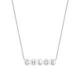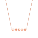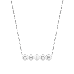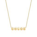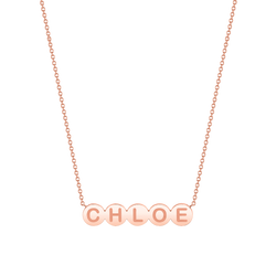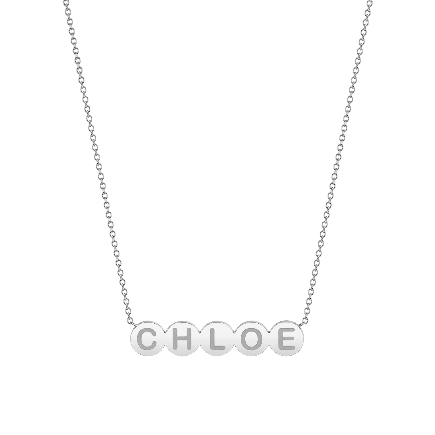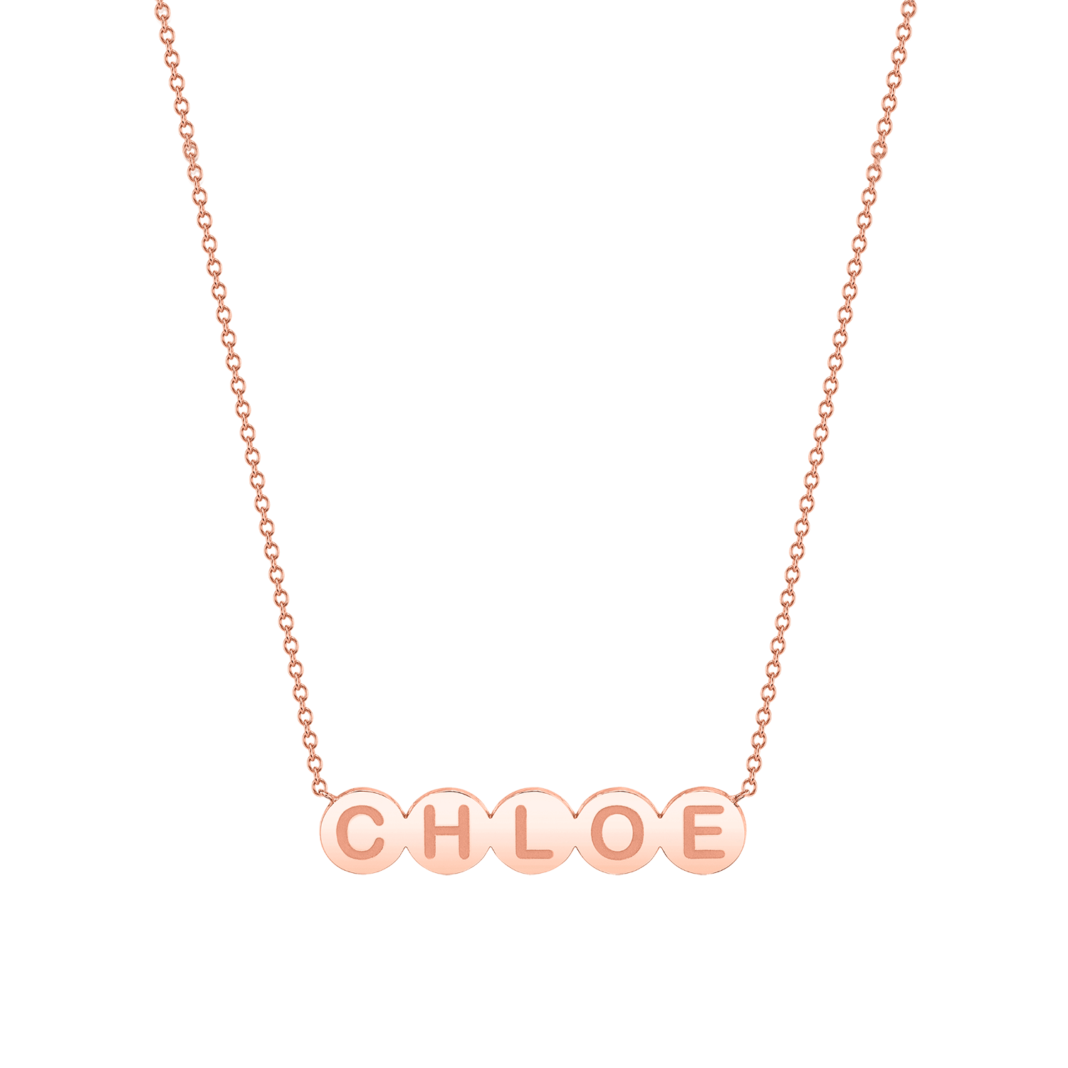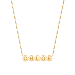 The handcrafted Baby Gold Bubble Collection 5 Round Engravable Necklace is a charming string of customized letters on a dainty 14kt gold chain. Tell the world who or what you love with this highly wearable necklace.