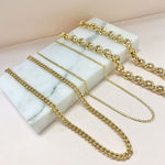 Our 14K Grand Cuban Curb Link Necklace is the perfect piece to layer up for summer. available 3 lengths, it is timeless, effortless yet bold! 5.5mm wide links assembled together with perfect precision. Though made from solid 14K gold, these links are hollow, giving it a lightweight feel. A sturdy Lobster lock is used to secure the piece around your neck.