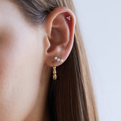 The perfect addition to our beaded collection, our new Bead Ball Hoops are the ideal size for everyday AND all day wear! A continuous row of ball beads adds a playful edge to any ear stack! Pairs beautifully with our Bead Ball Necklace and Bracelet.