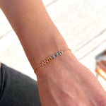 The wait is over for your new favorite name bracelet! Simply Customize with the name you would like to adorn around your wrist. Layered or solo, this custom bracelet will be the perfect piece for you. Each bracelet is custom CAD, rendered and made just for you in Los Angeles.