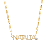 The hottest new name necklace in the game has arrived! Our Custom Paper Clip Diamond Name Necklace exudes luxury pairing a paper clip chain with a diamond name. Personalized and dripping with diamonds, each name includes a bezel set diamond at the end. You will surely turn heads and stun with this forever piece.