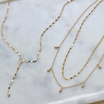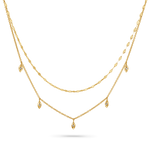 The perfect balance of elegance and charm, our Demi Starset Diamond Drop Duo Necklace is a layered beauty that features two delicate 14K Gold chains. The top chain is a sleek and sparkly Demure chain, while the lower chain is adorned with shimmering diamond-accented drops set in a star-set silhouette. The layered design adds depth and dimension, perfect for creating a graceful yet eye-catching statement. Ideal for those who appreciate effortless layering, this necklace is designed to elevate any look. Perfect worn alone or combined with other pieces for a bolder style.
