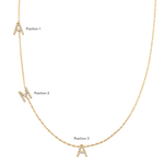The perfect personalized piece is finally making it's shining diamond debut with the ability to accommodate multiple letters, following our position guide. This necklace is the diamond sister to our bestselling asymmetrical later necklace. The perfectly handset pave diamonds make this a cherished piece not only for every day but also to pass down for years to come. Whether worn alone or stacked with your favorite Babygold chains, our Multi Initial Necklace is a perfectly modern take on a classic.
