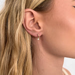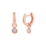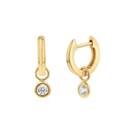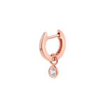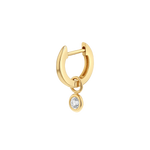 This dome shaped huggie hoop with stunning diamond drop charm will be the most versatile earrings you own! The sister style to our Slim Dome Huggie these hoops have a removable diamond drop charm and can go from casual to evening chic in a flash. Layered into your favorite stack and super cute alone, these hoops will add that effortless glam to your look. You will not want to take these off!