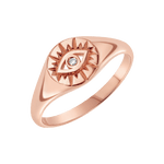 Our new Evil Eye Round Signet Ring embodies the perfect silhouette of a signet ring paired with a beautifully diamond cut evil eye etching. Dressed with a diamond center stone, this piece is hand set and hand engraved with a diamond bit. The perfect handmade piece that will shine forever. Perfect for any finger and delicate enough for a pinkie ring.
