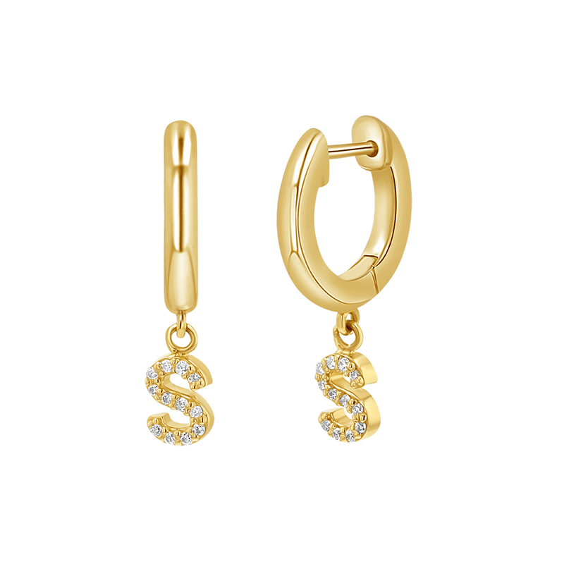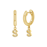 The essential huggie reimagined with a drop of your favorite initial charm, and better yet, set in luminous pave diamonds! Our new 14K Gold Charm Drop Huggie collection brings you unique huggies that are a versatile centerpiece to any stack while the charm bounces light in every direction. So many options to choose from just waiting for you to make them your own! Available in diamond or solid 14K.