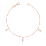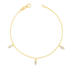 The Pear Shape Diamond Drop Bracelet is a timeless investment that never goes out of style. This bracelet features 3 pear shape drops with 2 diamond on each. These dainty drops cascade gracefully from a 14K Solid Gold chain, adding a layer of glam to any wrist stack. Available in 14K Yellow, White & Rose gold.