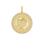 This sparkly and bold Zodiac charm is a stunning symbol of the sign that means most to you. Stunningly crafted in 14K Solid Gold, with a luxurious pave set diamond trim all around. This is the perfect centerpiece to complete your layer. Sun sign, Moon sign, yours or another's...it pairs beautifully with our connectors and fits most chains.