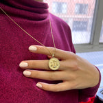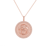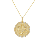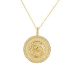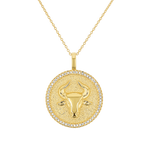 This sparkly and bold Zodiac Necklace is a stunning symbol of the sign that means most to you. Stunningly crafted in 14K Solid Gold, with a luxurious pave set diamond trim all around. This is the perfect centerpiece to complete your new favorite layer. Available in 3 gold colors and many chain length options.