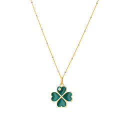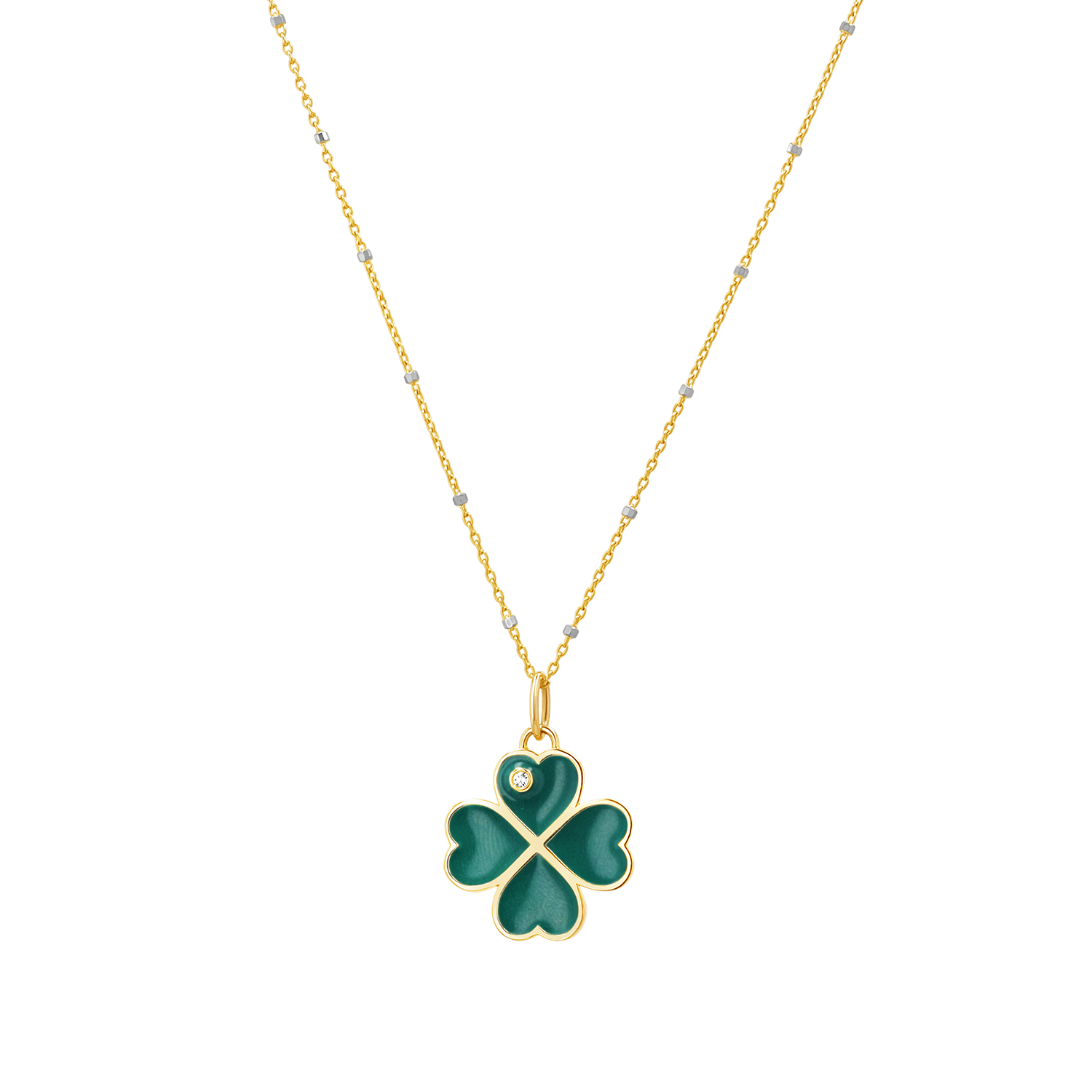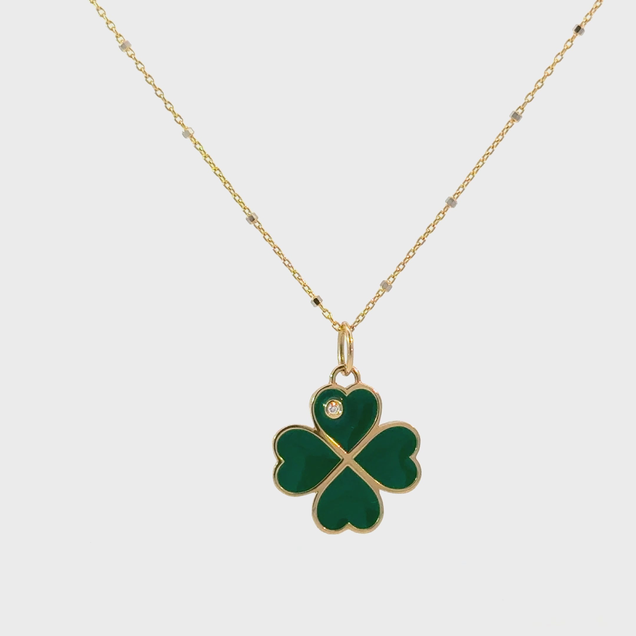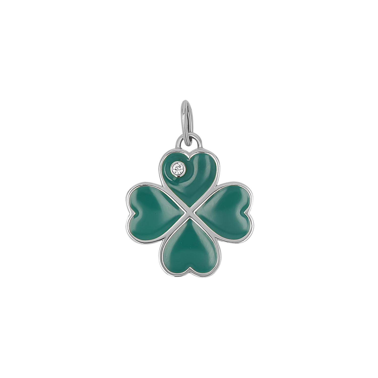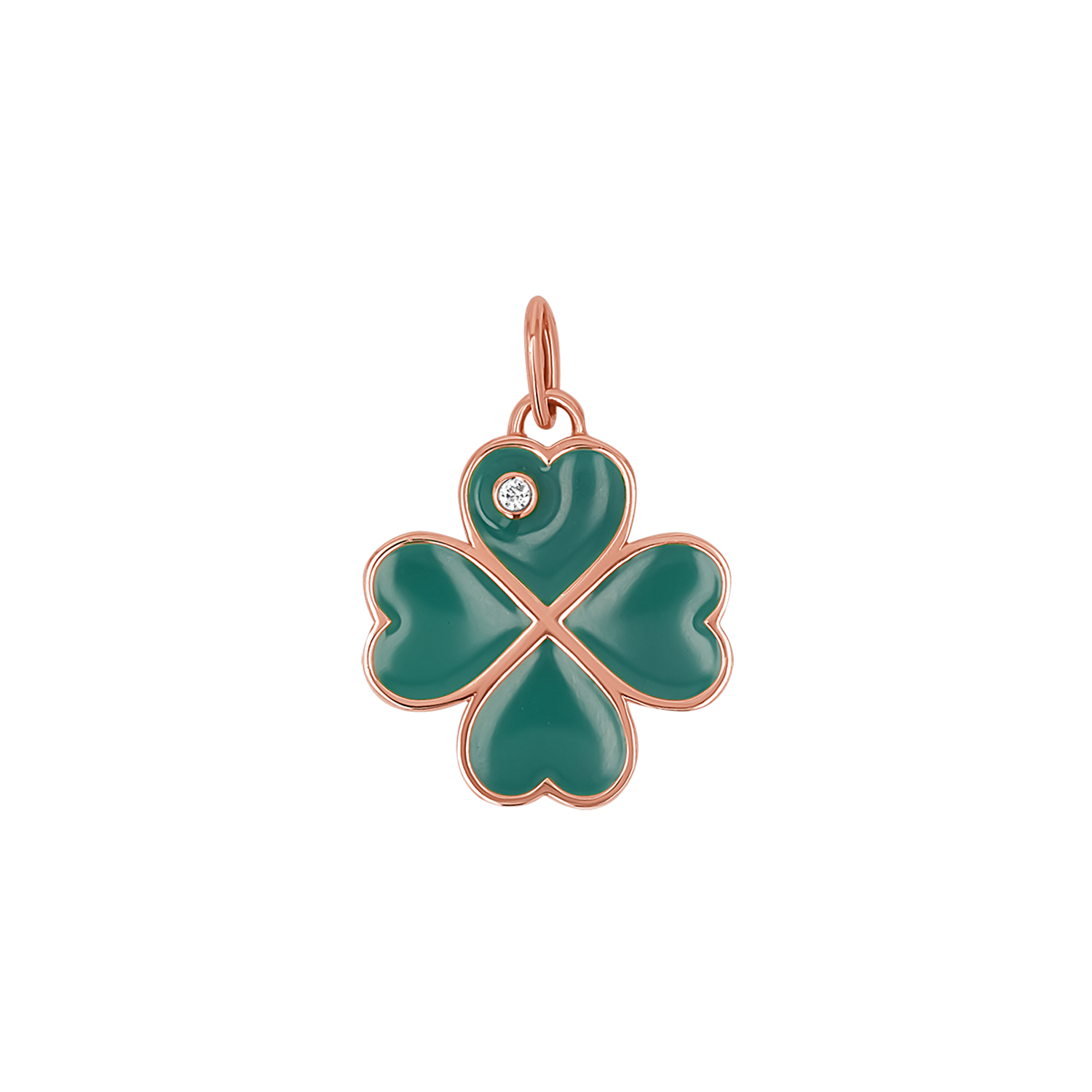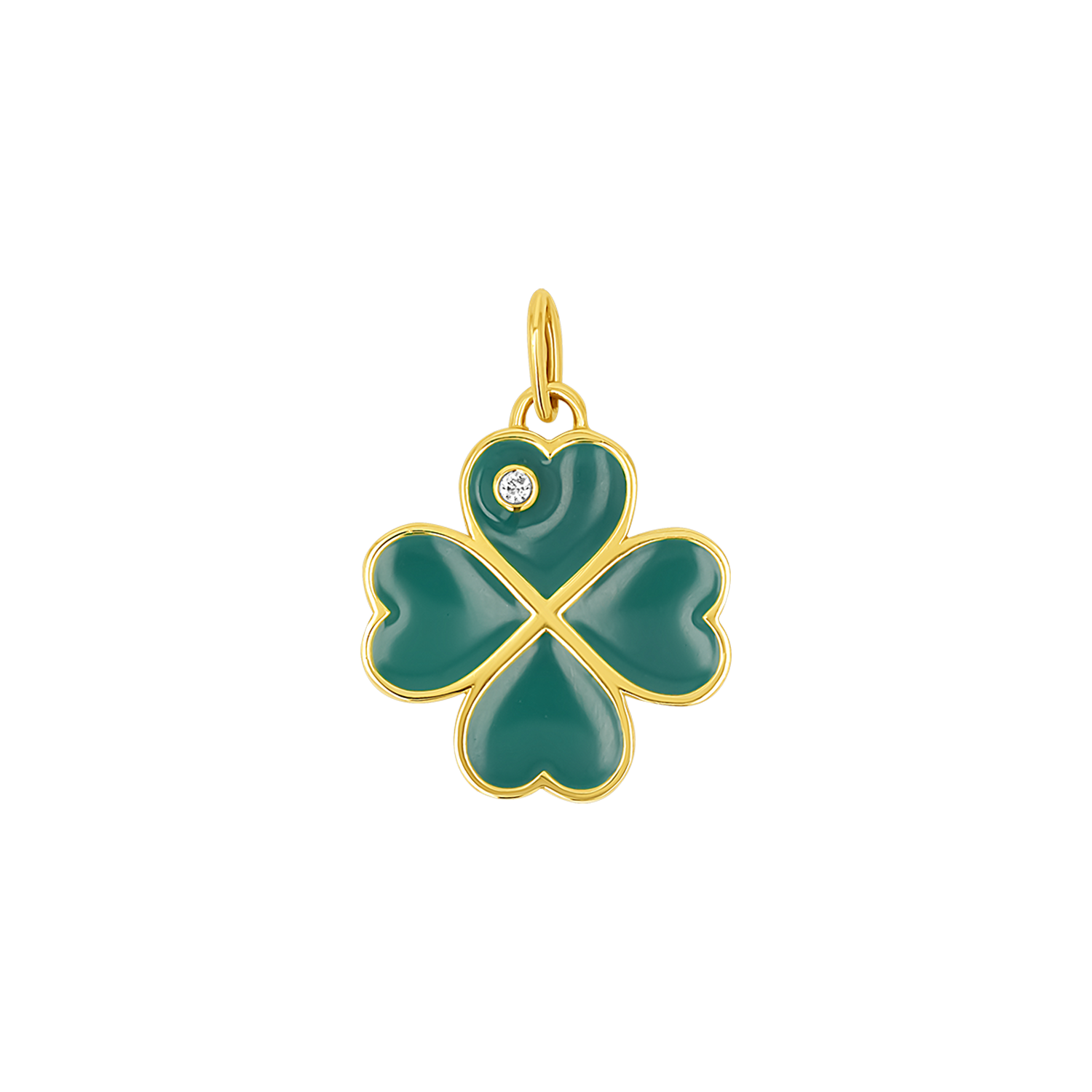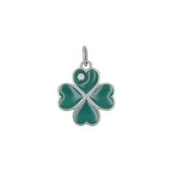 Elevate your style with our exquisite Emerald Clover Charm With Diamond Accent. Crafted with lustrous green enamel and sparkling with a shimmering diamond, this charm radiates elegance and luck. Wear it as a symbol of prosperity and fortune, adding a touch of sophistication to any ensemble. Never forget how lucky you really are with this beauty!