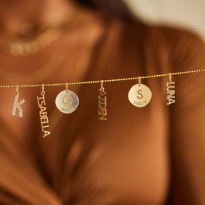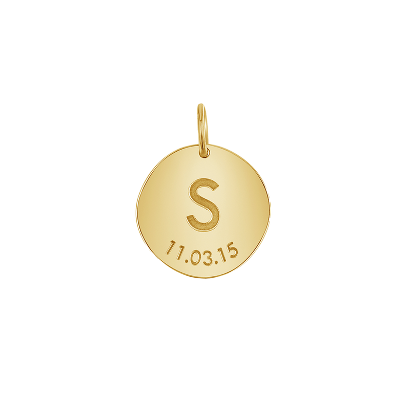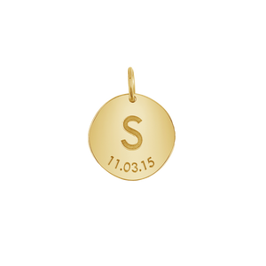 Beautifully handcrafted with 14K Solid Gold, this engravable Initial & Date charm is a perfect way to customize your neck stack with the ones you love. Whether a birthdate, anniversary or graduation our Initial & Date Charm will surely keep your fondest memories close to your heart. Pairs perfectly with most Babygold chains!