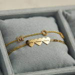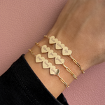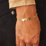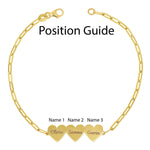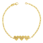 Beautifully handcrafted on our dainty paperclip chain, this engravable multi heart bracelet is a perfect way to customize your wrist stack with the names of the ones you love. Engravable in the most elegant font to display up to three names, this 14K Solid Gold heart bracelet will be one you will treasure forever.