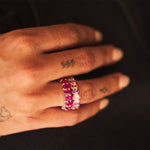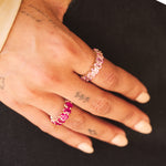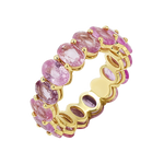 In honor of all things Pink, We have launched our new favorite piece. Our Pink Sapphire Oval Eternity ring features 7.60cts of natural brilliant pink sapphires. Handcrafted in 14K Solid Gold, and hand set by our master stone setters, the bold pop of pink adds a undeniably chic and fun vibe. These sapphires will stand the test of time and your new favorite ring will soon be a coveted heirloom.