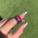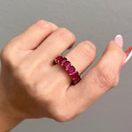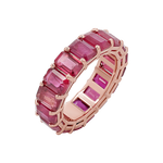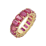 These delicious emerald cut Ruby stones sparkle the most brilliant hues of Red, creating a prismatic, show-stopping look. Wrapped around a 14K Gold band this iconic piece will be your go to from day to night. Stacks beautifully with diamonds or wear alone for a meaningful statement.
