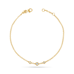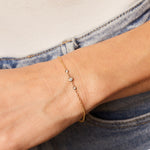 Introducing our Graduated Diamond Trio Bezel Bracelet. This is the kind of piece you never take off and never stop getting compliments on. Three bezel-set diamonds float effortlessly along a dainty 14K solid Gold cable chain, with an adjustable fit for easy layering. Whether you wear it solo or stack it up, this bracelet brings that perfect dose of sparkle, subtle enough for every day, luxe enough to feel special.
