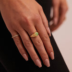 Designed in the essence of a 14k Solid Gold Signet, this luxurious Opal is not only elegant but also alluring in it's subtle play on colors. Whether worn as a cocktail ring or stacked casually with denim and a T-shirt, you will love the natural beauty of this stunner.