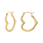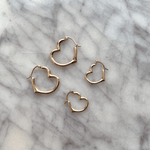 Add a little dose of love to your jewelry box with these beautifully crafted heart shaped hoop earrings. Available in 2 sizes, these heart hoops sit sideways on the ear with a snap closure. Fun and flirty and always representing love, these hoops will surely make a positive statement wherever you wear them.