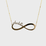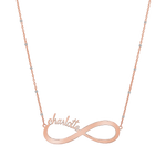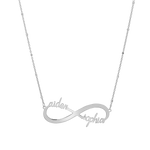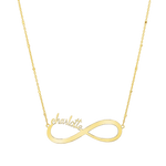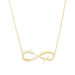 Our 14K Solid Gold handcrafted Infinity Name Necklace will be an infinitely perfect piece of jewelry to add to your collection. The infinity symbol carries a spiritual meaning, essentially representing anything that is infinite in value, and now you can personalize this meaningful and limitless show of love with the names of the ones most special to you. Stacks beautifully with our diamond solitaires or chains.