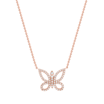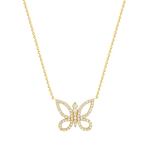 As striking as the natural beauty of a butterfly, this stunning Diamond Pave Butterfly Necklace will shine as bright as your little one. Masterfully set pave diamonds on a delicate sparkle chain, combined with the symbolic beauty of a butterfly, will surely make for a stunning centerpiece.