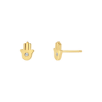 These beautiful Hamsa studs with diamond center stones will sparkle and shine while surrounding your little one with positive vibes all day long. The perfect size for daily wear, these 14K protective earrings will be treasured for years to come.