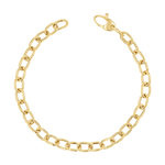 Our Large Rolo Chain is the perfect piece to have in your collection. The handmade oval links are the perfect adjustable chain to layer with charms or wear solo for a more minimal look. 14k yellow gold and also available in a necklace.