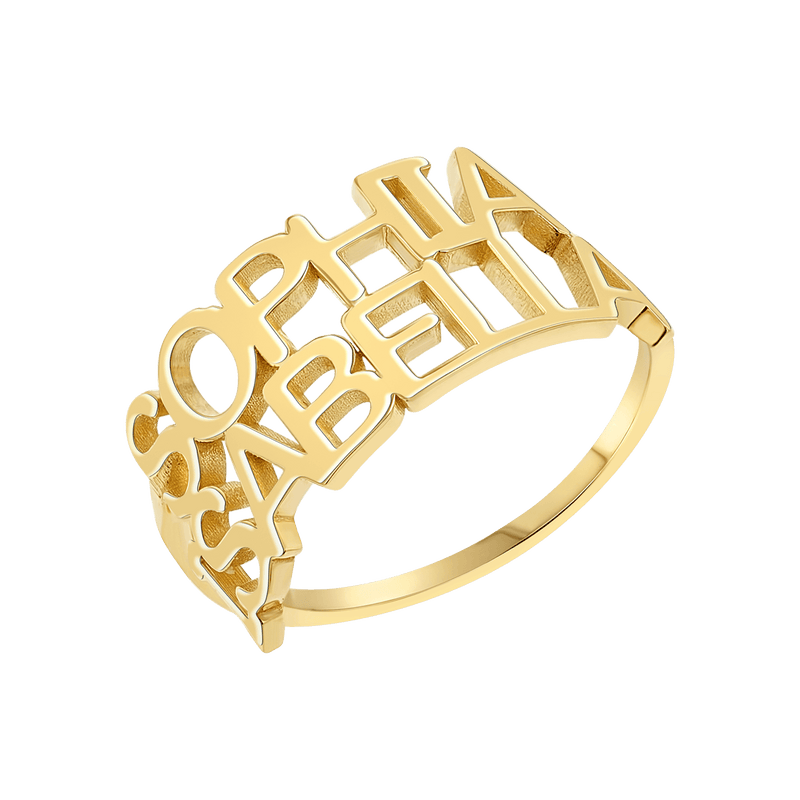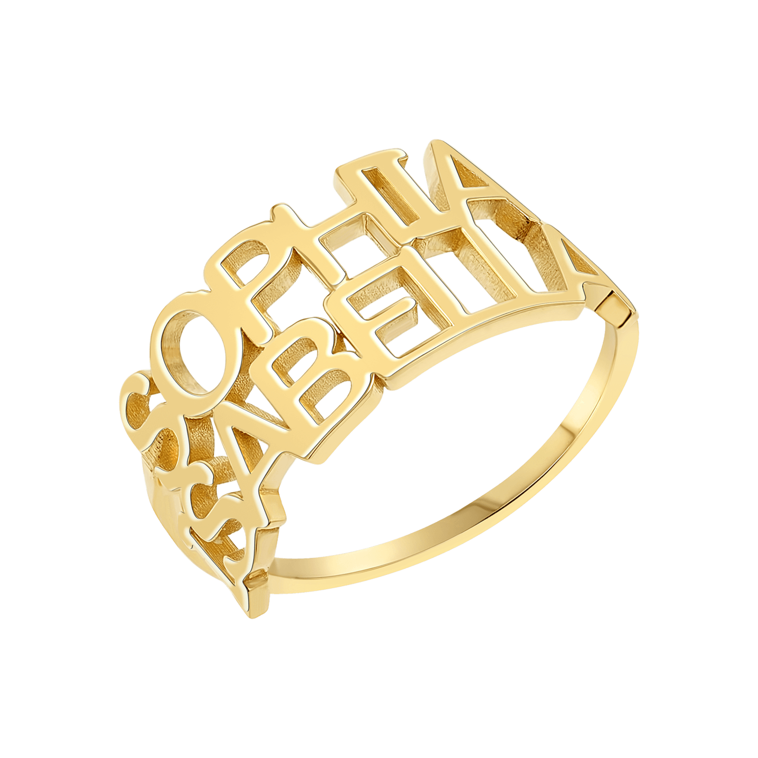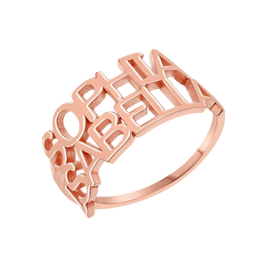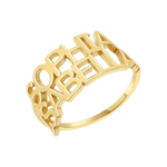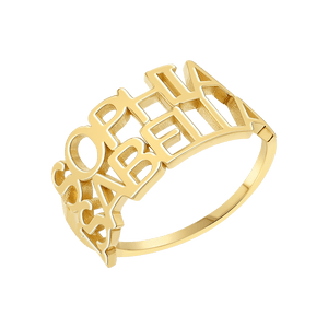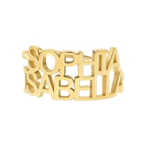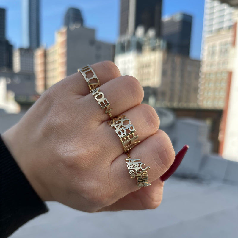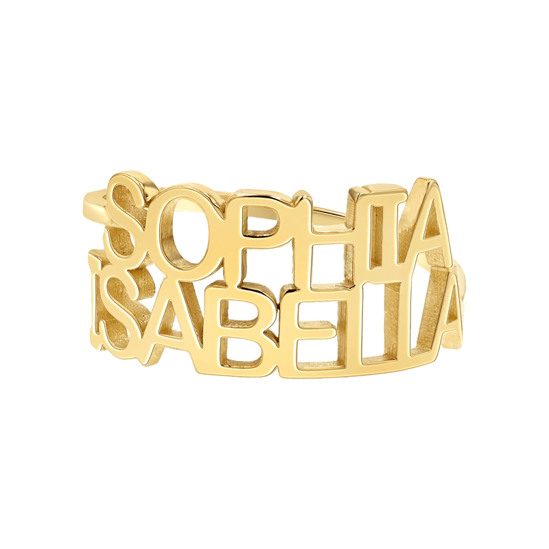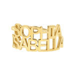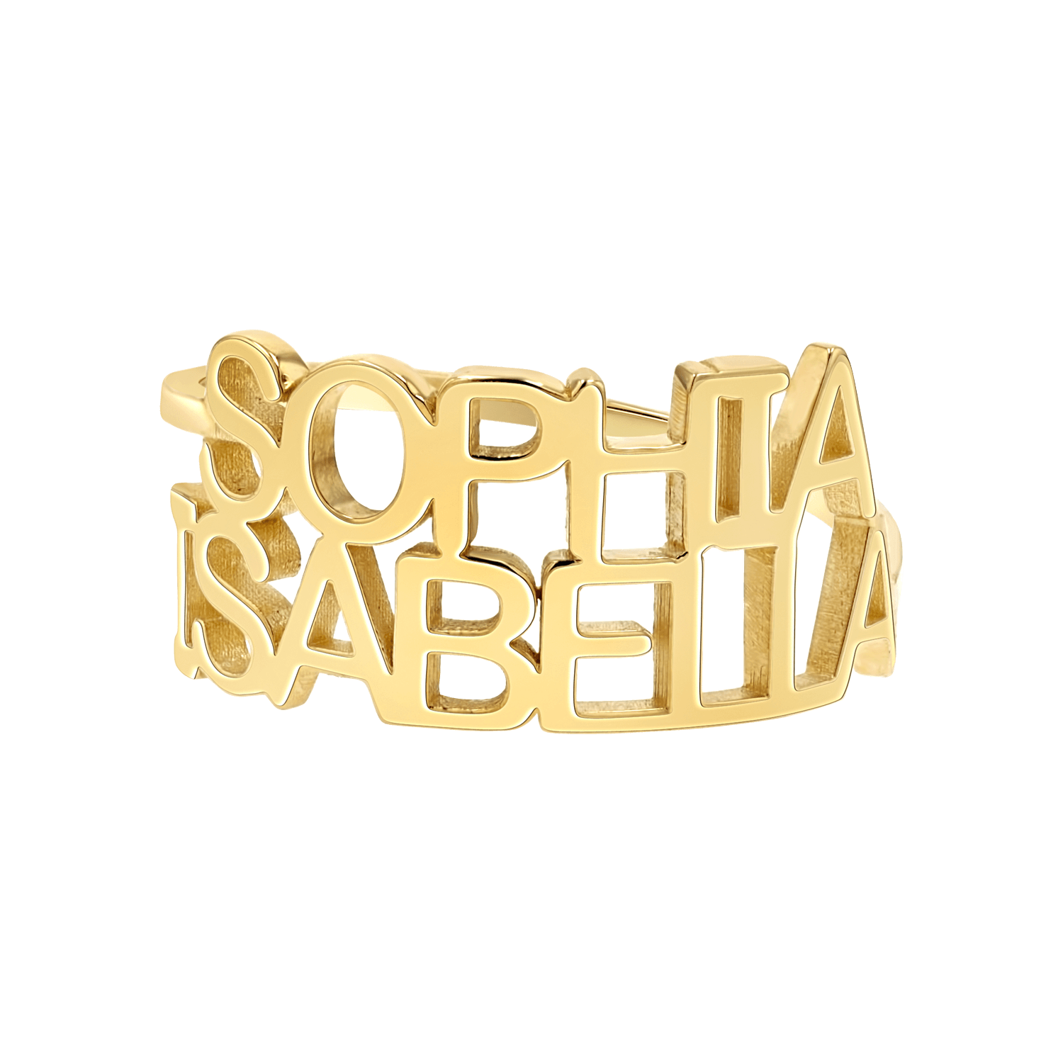 Our 14K Solid Gold Linear Double Name Ring allows the wear of 2 names with a comfortable seamless band. The 1.2mm square wire band gives your finger a light wear. Each ring is CAD drawn and custom made upon order. Measuring in 10MM width, it's surely a bold look without sacrificing any comfort.