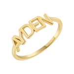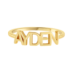 With our 14K Solid Gold Linear Name Ring you can now wear your name or the name of your loved one on your ring stack. Each name ring is custom designed and casted with a 1.2mm square wire band attached, giving your finger all the right vibes with an easy light wear. Letter height measures at 5MM wide. Bold yet comfortable, this piece will be your new favorite.