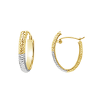 No need to choose when you can wear your favorite shades of Gold! Now you have both wrapped up in one perfect oval hoop! Our Lumi Two Tone Oval Hoops are the ideal size and shape for daily wear. Featuring a stunning diamond-cut texture and a secure lever back closure. Our fav feature though has to be the hidden posts which allows for the perfect placement on the ear. No visible hinges or hooks here, just a perfect seamless look! So go ahead and layer your favorite white or yellow gold pieces, and mix and match for a new fresh look!