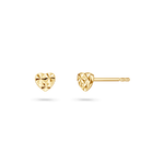 Add a touch of charm with our Mini Sparkle Heart Stud Earrings. Crafted from 14K solid gold, these delicate earrings feature a diamond cut shimmering heart design that captures the light with every movement. Their petite size makes them perfect for everyday wear, offering a subtle yet radiant touch of love to any look, whether worn alone for a hint of sparkle or paired with your favorite pieces.