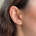 Set in a delicate 14K Solid Gold setting these classic stud earrings exude elegance as the pear shaped diamonds catch the light. These superior quality VS2 natural pear  diamonds are set east to west. One of the most versatile pieces you will own, you'll never need to take these stunners off. Layer up or down based on your mood. Explore the Babygold collection of shapes diamond solitaire earrings. Pairs beautifully with our Diamond Pear Solitaire Necklace.