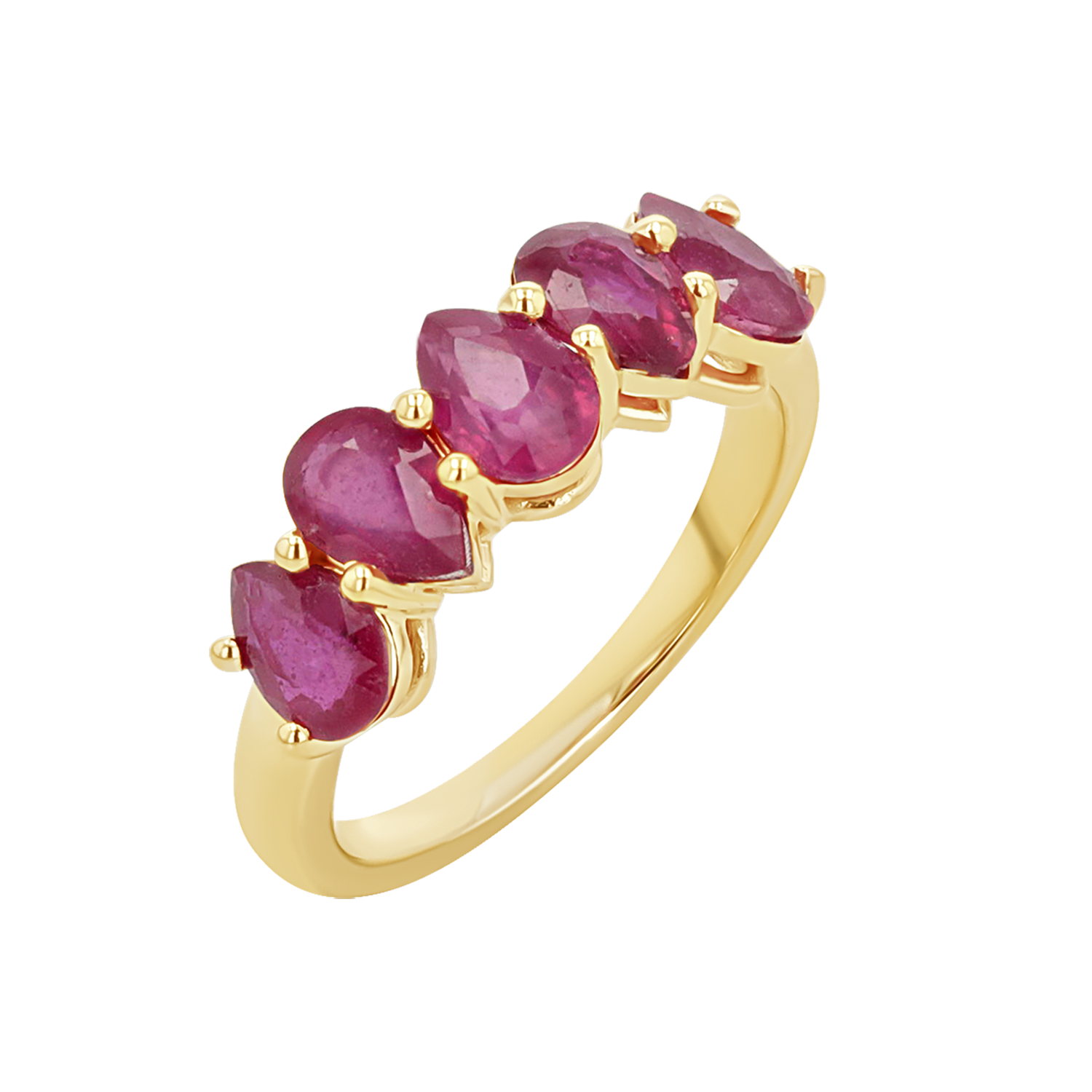 Signifying passion, protection and wealth these iconic pear shaped Rubies add a timeless essence to your ring stack. A design that is iconic and comfortable our half eternity band boasts a brilliant rich red hue and a striking silhouette with 3.0cts of natural Ruby stones. These alternating pear shapes are our newest and more daring addition to our eternity collection. A cherished piece that will live in your collection forever.