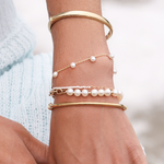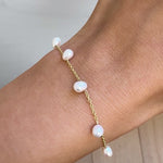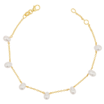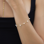 This delicate bracelet features lustrous freshwater pearls, each gracefully dangling from a fine 14K Gold cable chain. The alternating arrangement of pearls and gold adds a touch of luxe to any outfit. Known for their natural beauty and subtle iridescence, the pearls will catch the light beautifully, making this bracelet a perfect accessory for both day and night. The adjustable length ensures a comfortable fit for any wrist, while the secure lobster clasp keeps it safely in place. Stacks with all your favorites from Babygold!