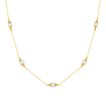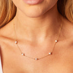 Simple yet so stunning, Our 14k Yellow Gold and Freshwater Pearl Station Necklace is the perfect junction of modern and timeless. Featuring perfectly opulent freshwater pearls, this strand will elevate any ensemble. Each Pearl is fastened with gold beads and strung on a delicate chain.