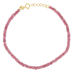 The perfect lightweight bracelet that boasts the perfect pop of pink to your wrist stack. Handcrafted in natural faceted Pink Sapphire gemstones, featuring a 14K Gold closure. Wear solo or slide on your favorite charms for a more personalized effect.