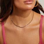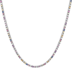 Finally a colorful counterpart to our much coveted diamond tennis necklace! Introducing our stunning Rainbow Gemstone Tennis Necklace, poised to take your neck game to another level. Beautifully prong set gemstones flow all around revealing a magnificent rainbow of color.