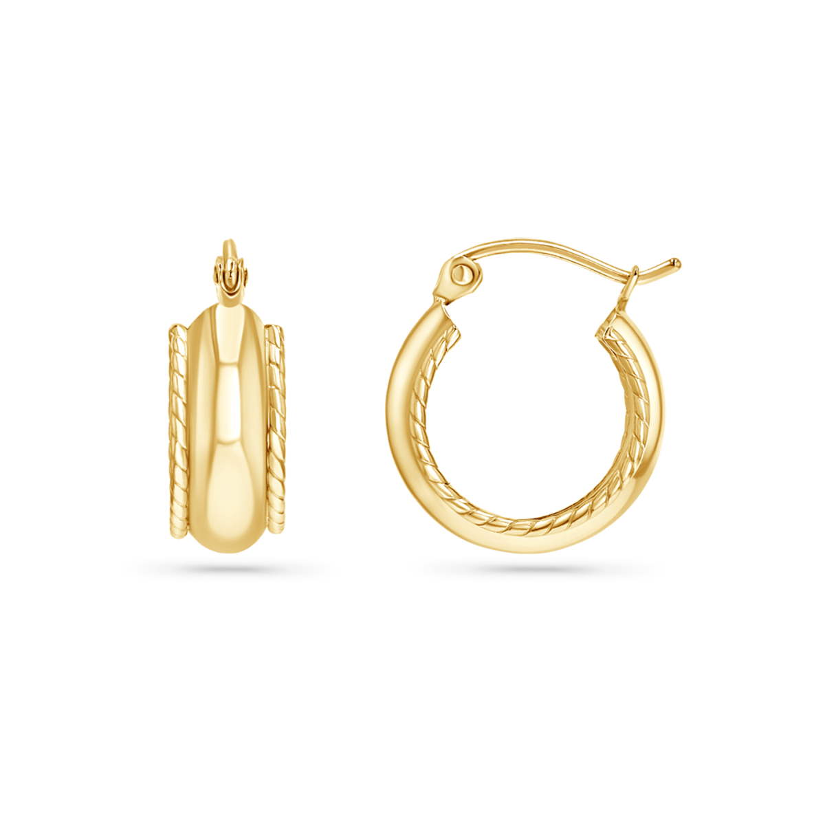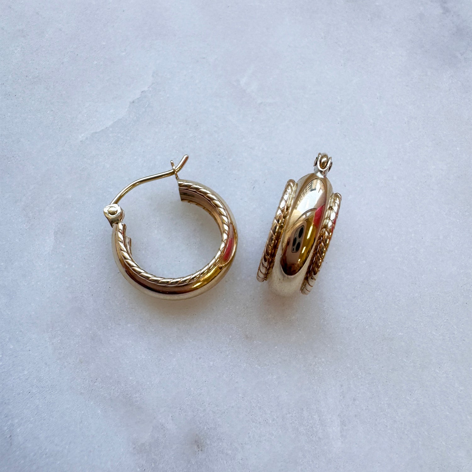 A classic forever piece with a little texture. Our 14k Gold Rope Edge Chunky Hoops feature a polished dome silhouette accented with a delicate rope-edge detail for the perfect hint of dimension. Lightweight, easy to wear, and made for everyday shine, they’re the hoops you’ll reach for again and again and love to stack with all your favorites!